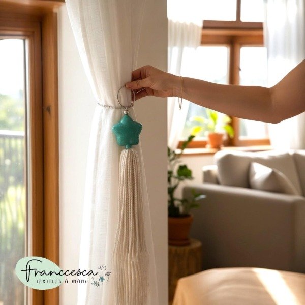 Podes usarlo de sujetador de cortina o colgarlo en el centro de los paños de riel americano o barral🌺