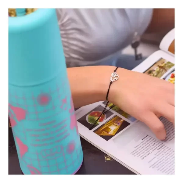 🛬Pulsera ajustable de hilo, y acero quirúrgico con dije de mundo en forma de corazón, resistente al agua e hipoalergénico, ideal para ser tu próxima compañera de viajes